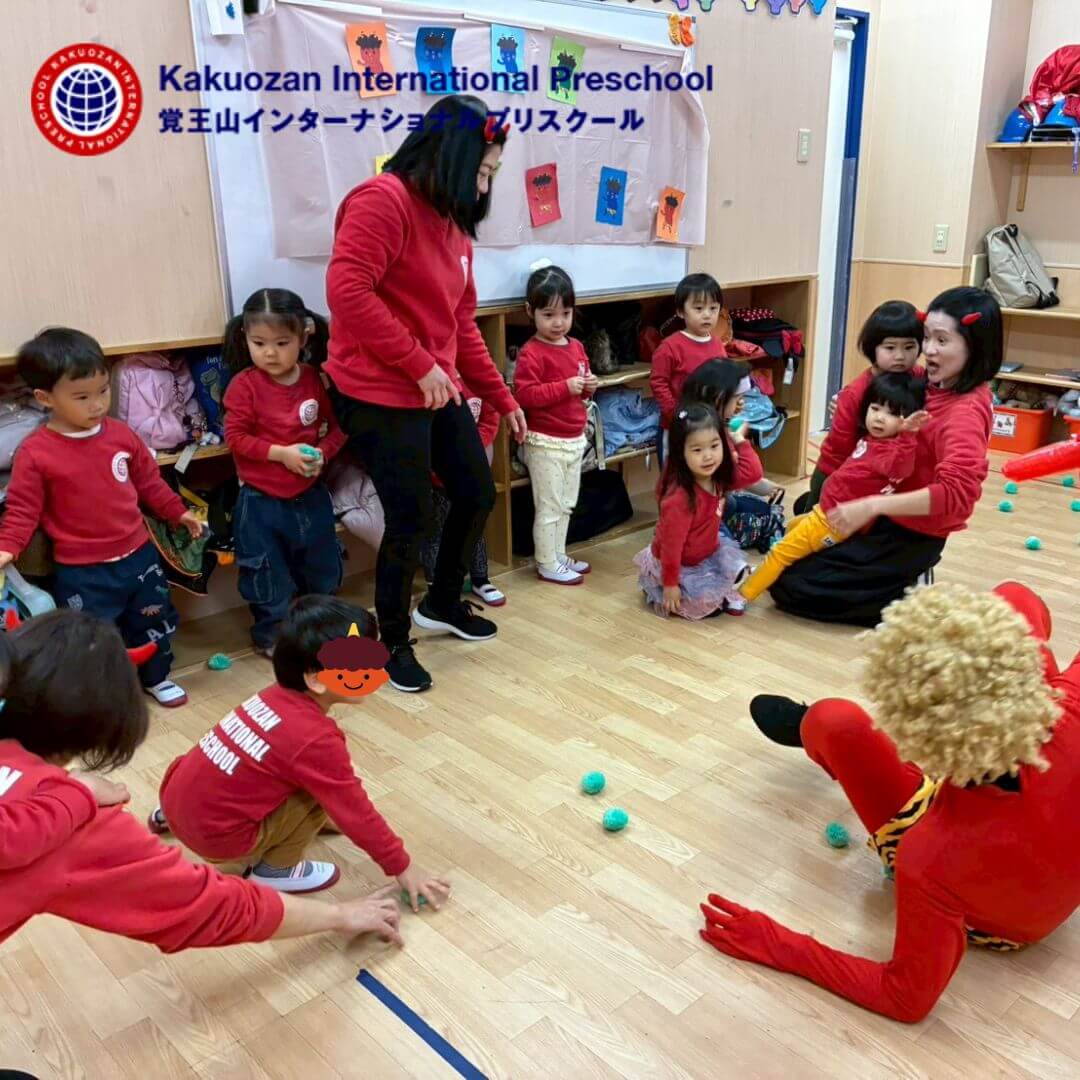 The ogre visit was carefully designed to be fun and age-appropriate, and the children quickly turned excitement into laughter. Setsubun was a wonderful opportunity to combine culture, play, and English learning, creating a memorable experience for our preschoolers.