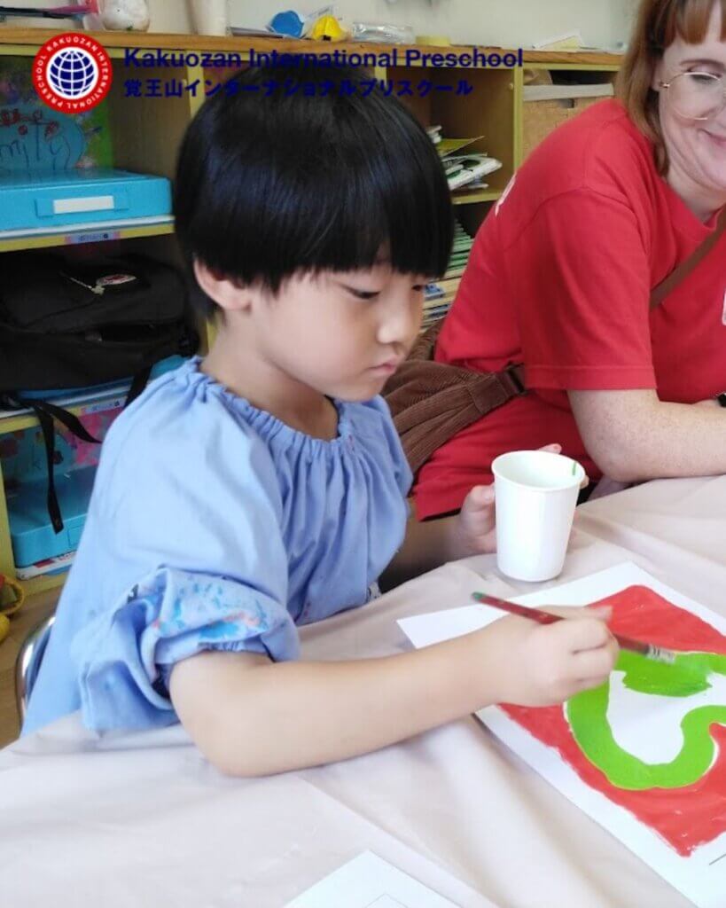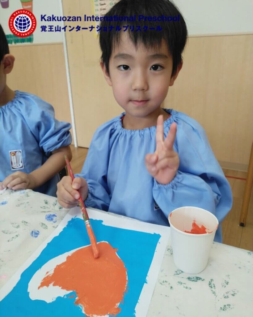 Our Parrots students (age 4-5 years) painted with opposite colors! This month the theme is “All About Opposites” and our preschoolers learned about opposite colors. Children used colors like red and green, black and white, red and blue to create wonderful, colorful paintings.