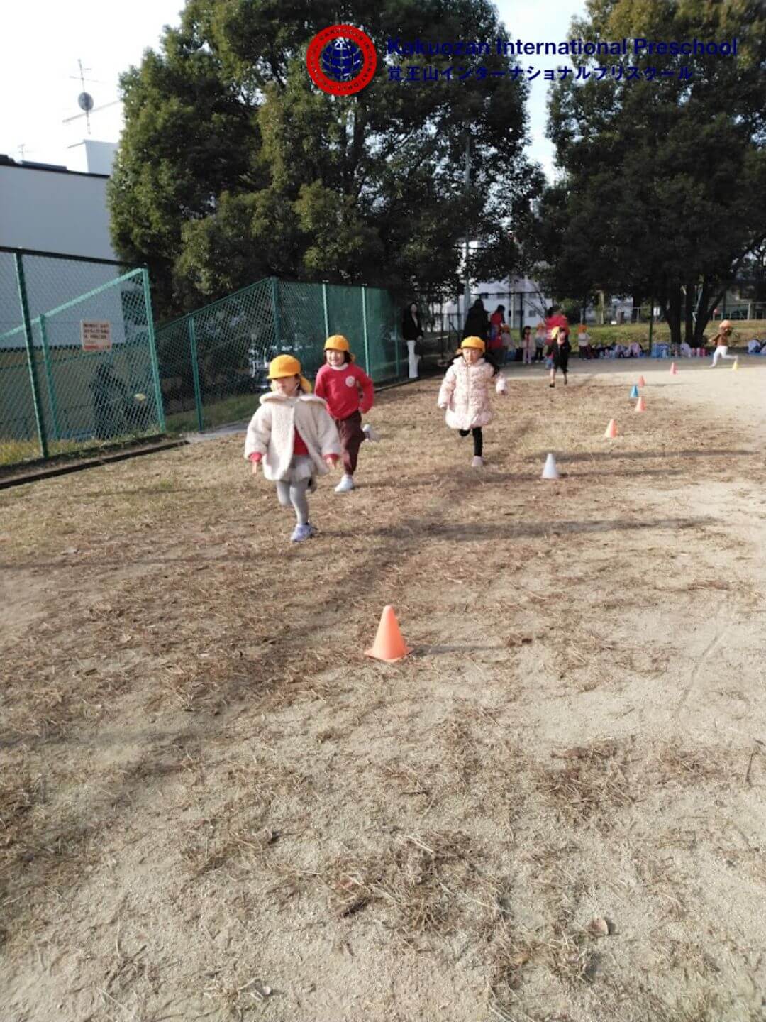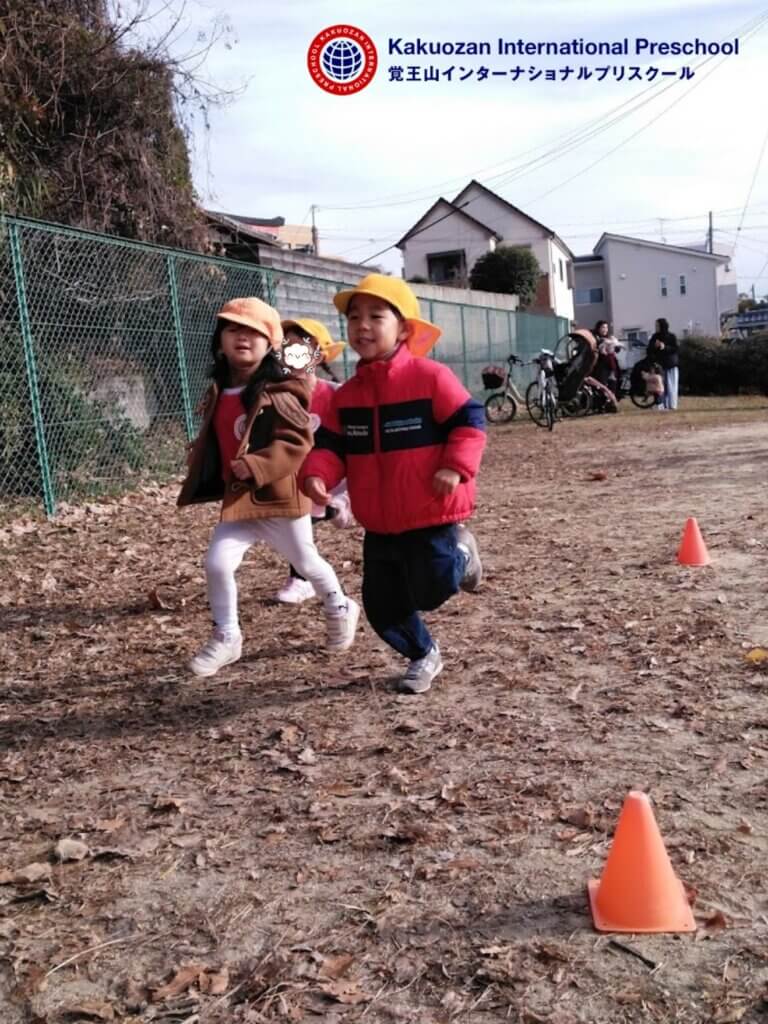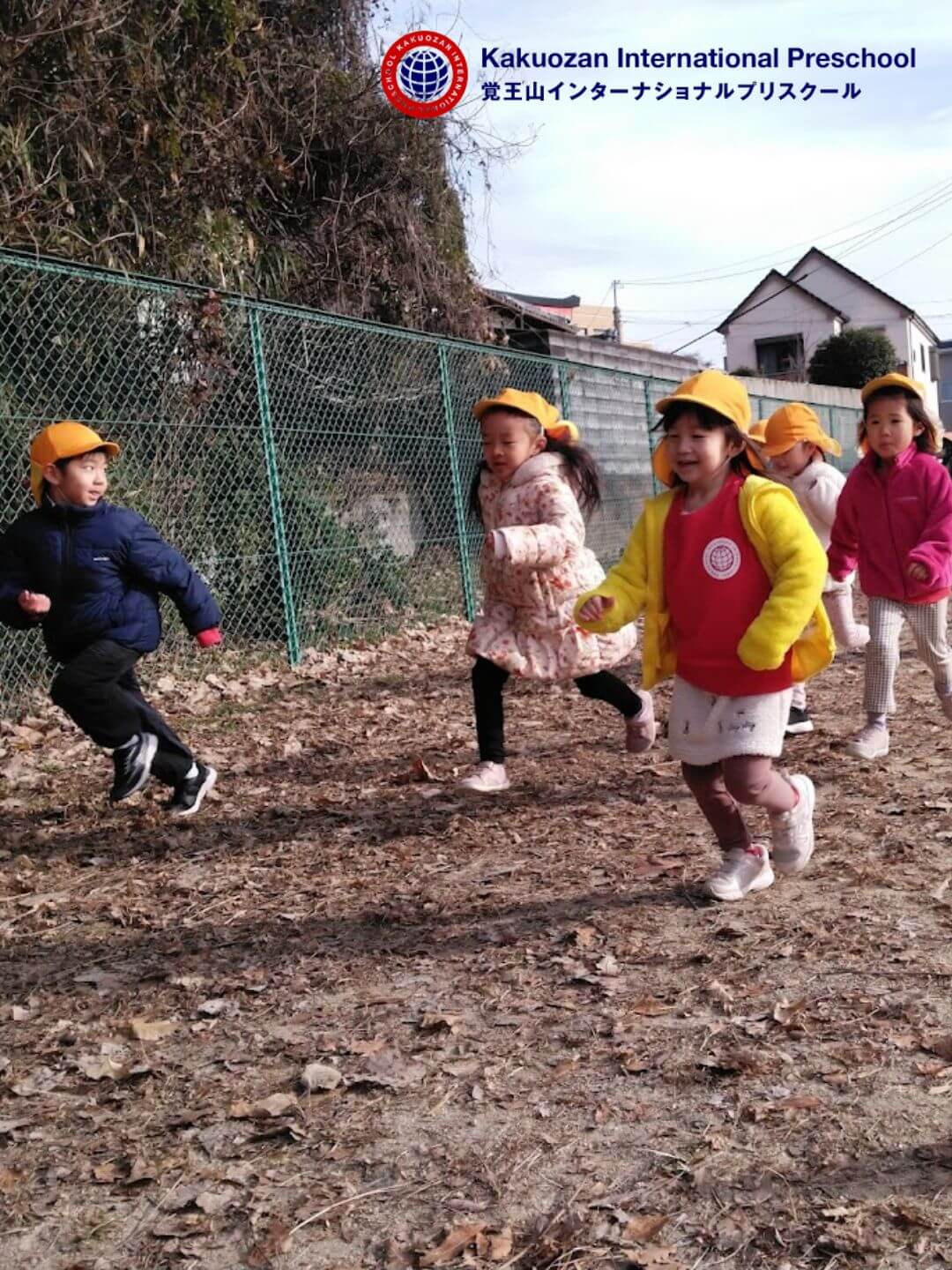 覚王山インターナショナルプリスクールのEaglets・Parrots・Hummingbirds クラス(年少〜年中)は、白山公園でのびのびと体を動かしています!