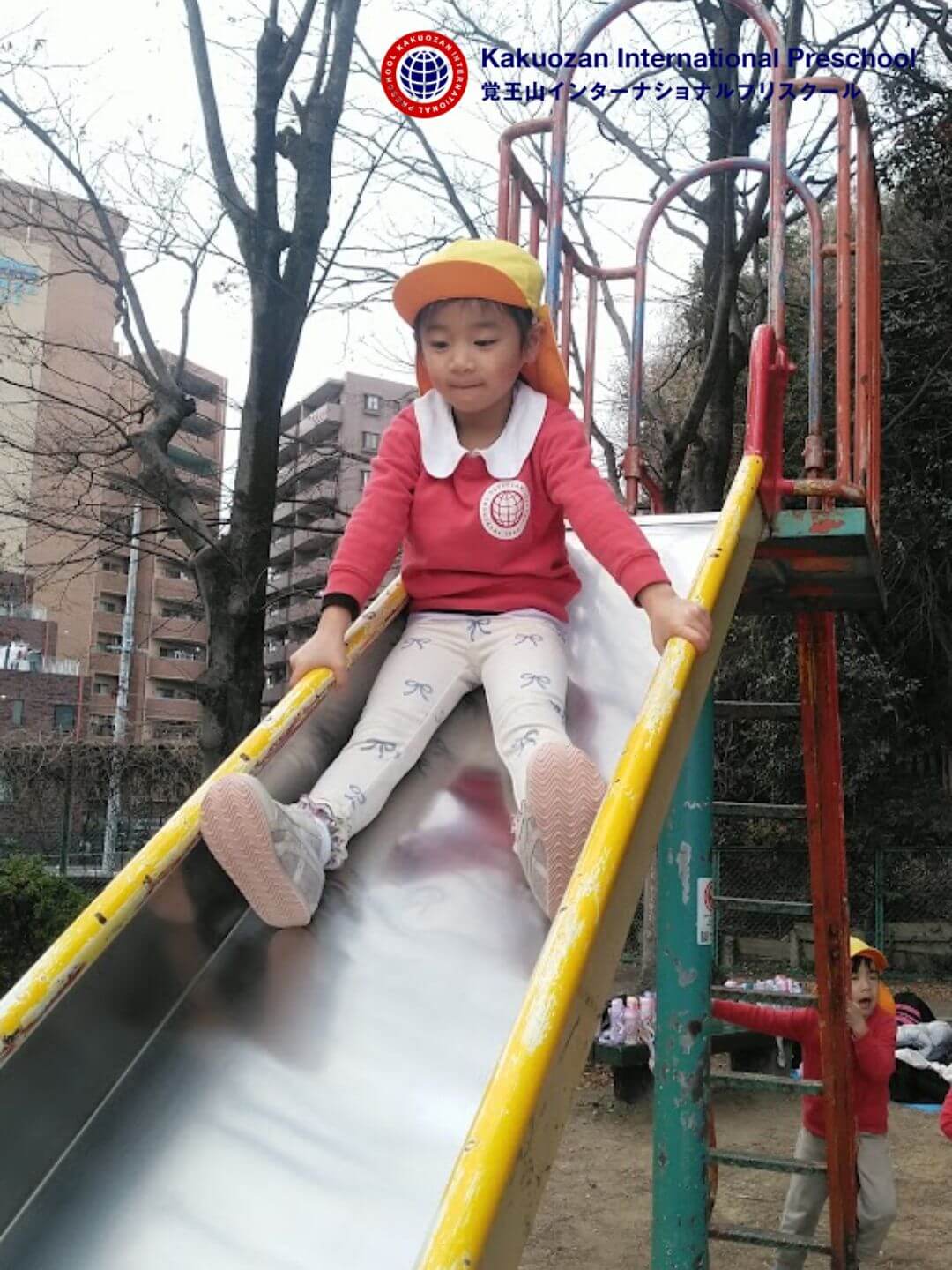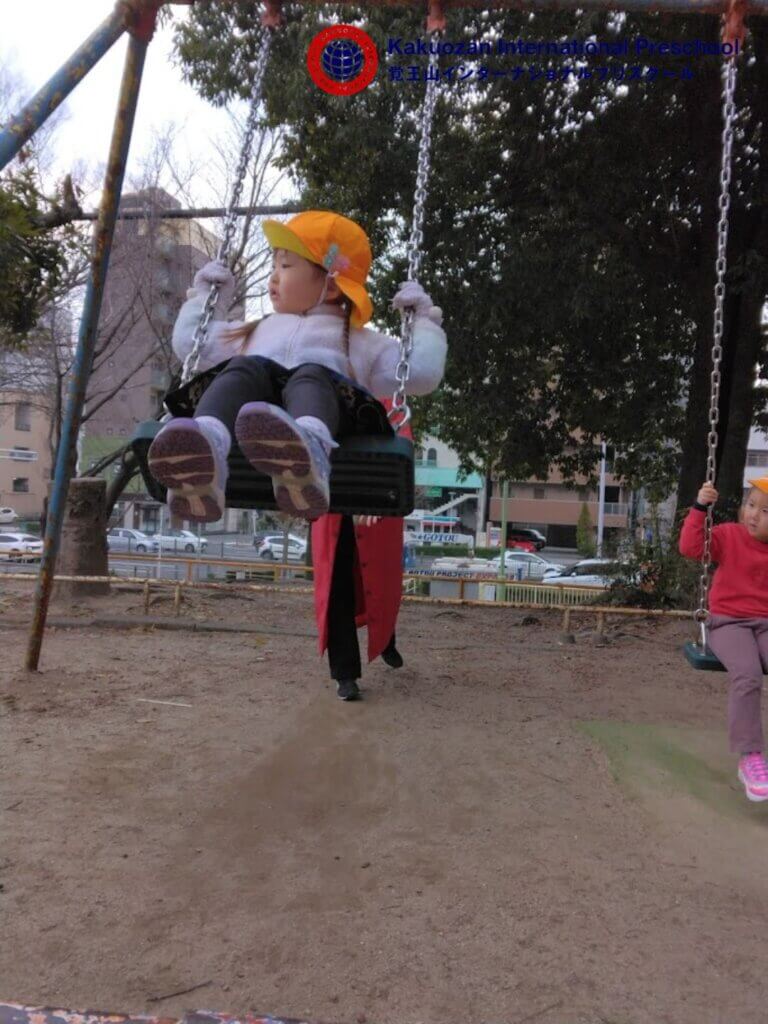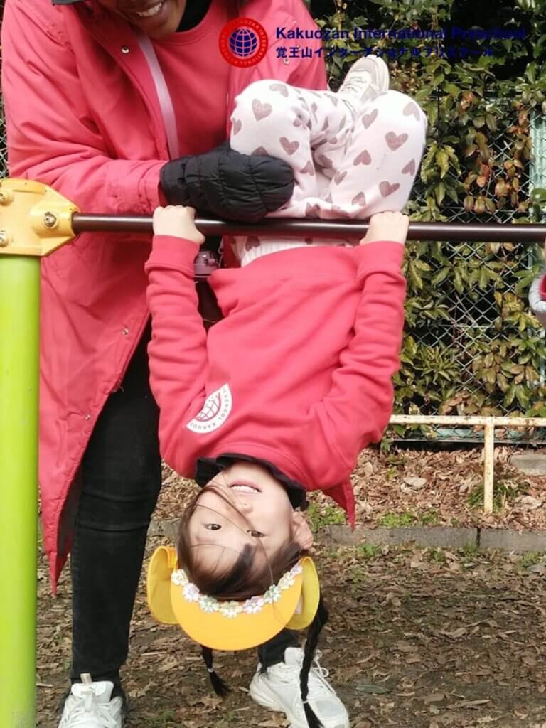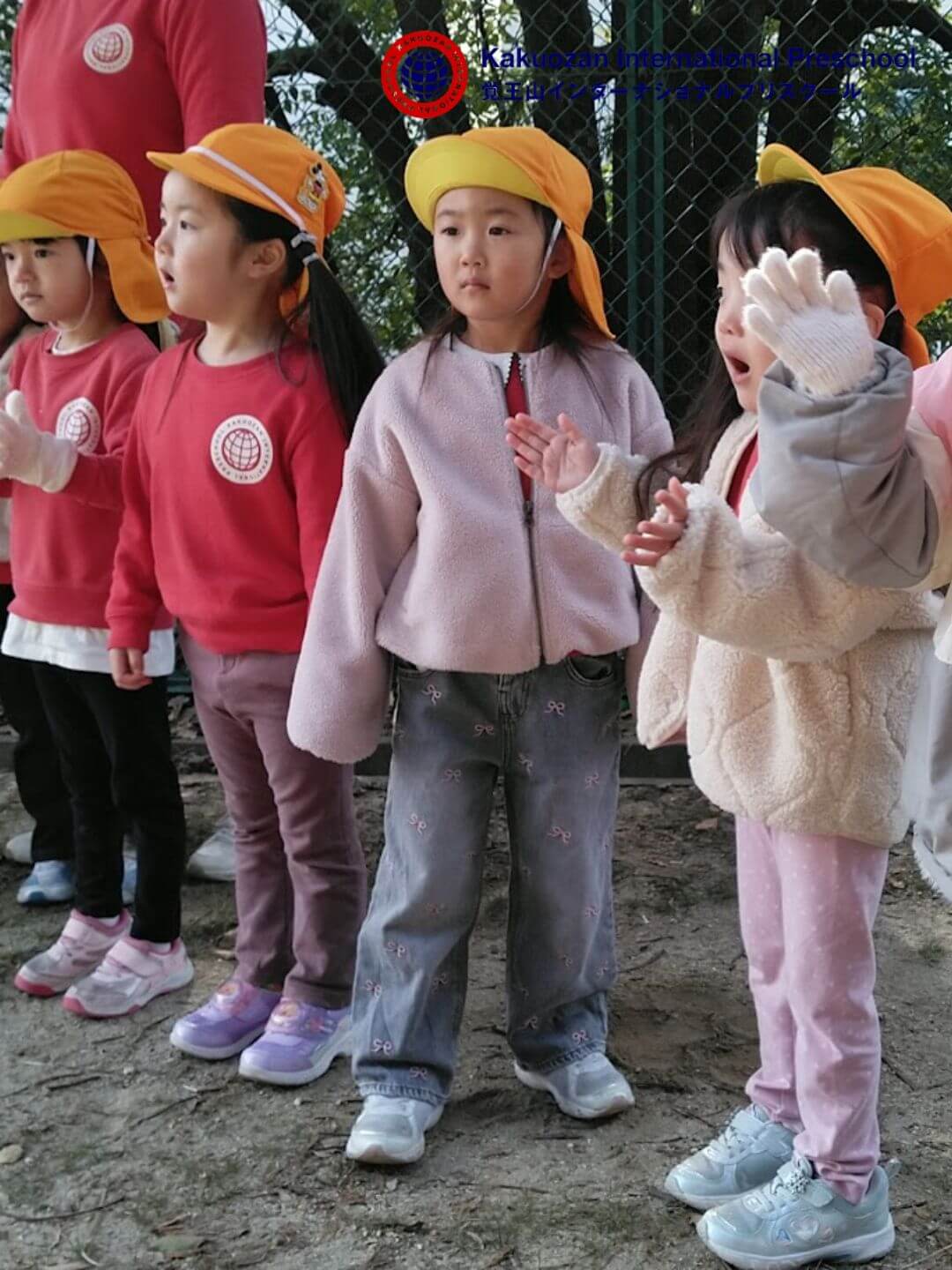 覚王山インターナショナルプリスクールのEaglets・Parrots・Hummingbirds クラス(年少〜年中)は、白山公園でのびのびと体を動かしています!